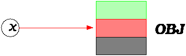 Let us make the terminology precise. x will be called an entity; this is a generalization of the traditional notion of variable. f will, in interesting cases, be a routine; Smalltalk would call it a method, but there is no need for a new term since the older one is well established. At run time the value of x, if not void, will be attached to a certain object, OBJ on the preceding figure.