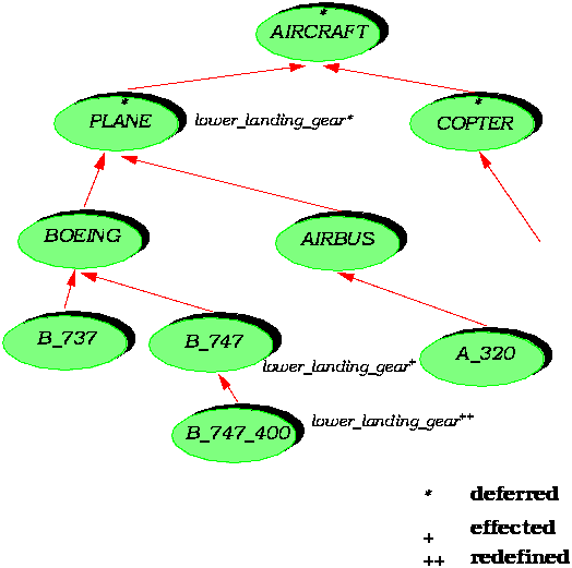 For example in a hypothetical inheritance hierarchy shown on the figure below, we might have the feature lower_landing_gear defined only at the level of PLANE, not at the general level of AIRCRAFT: